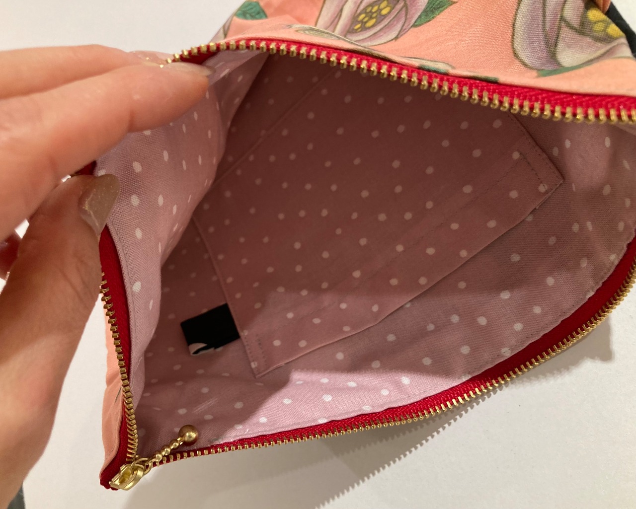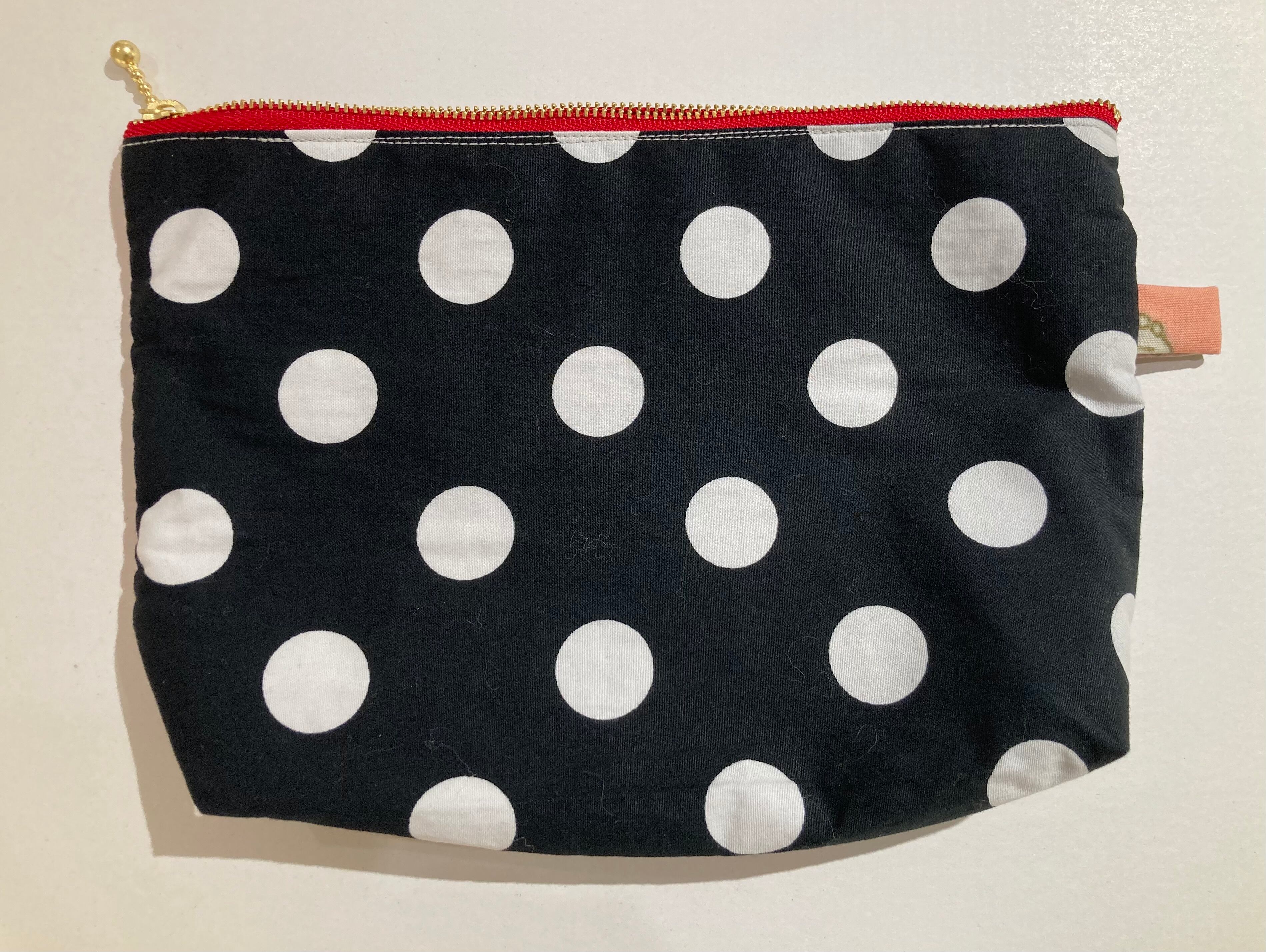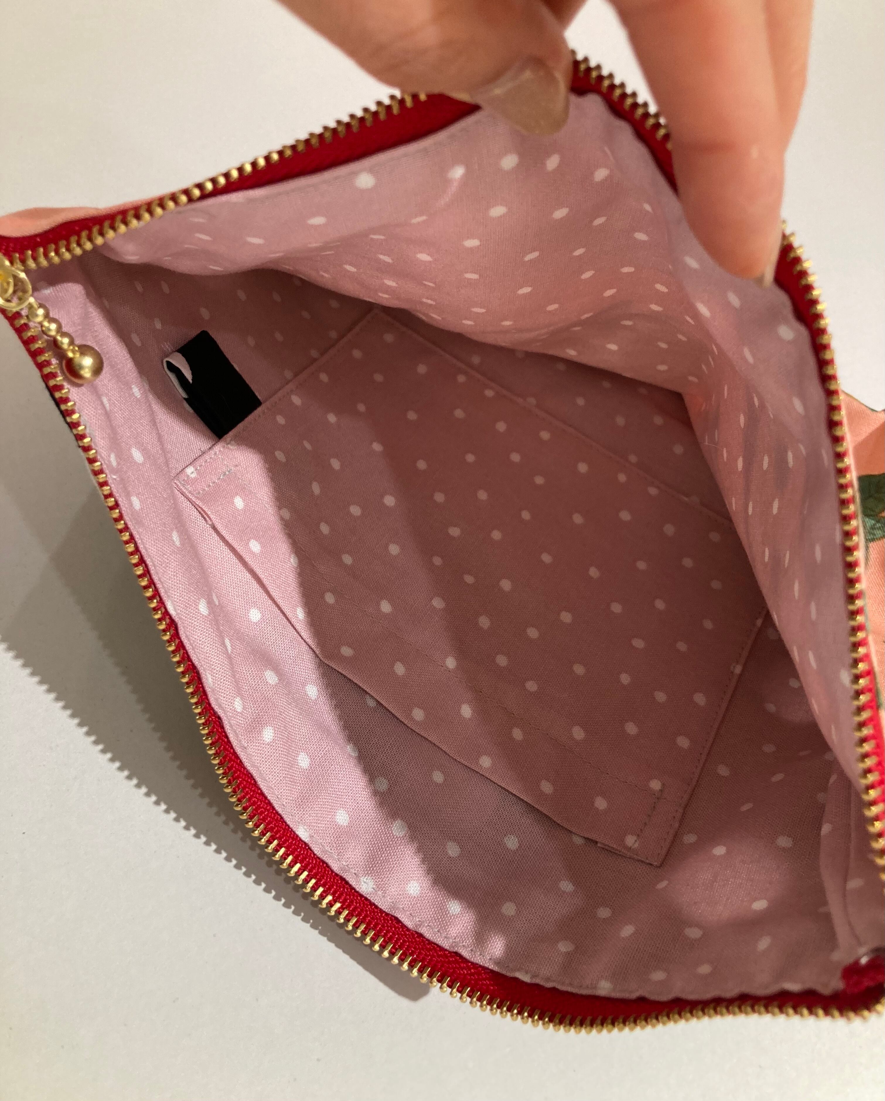 裏はドットです。中はピンク仕上げ。アンティークキャットたちのかわいいポーチです。