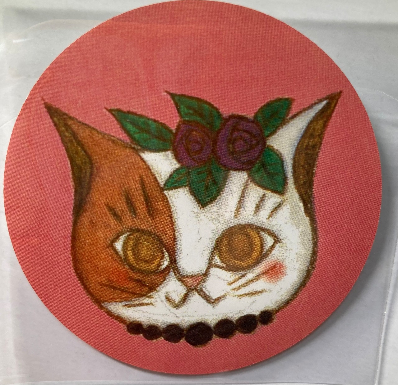 深い紫ローズの花飾りをつけた、気品あふれるおめかしにゃんこ。