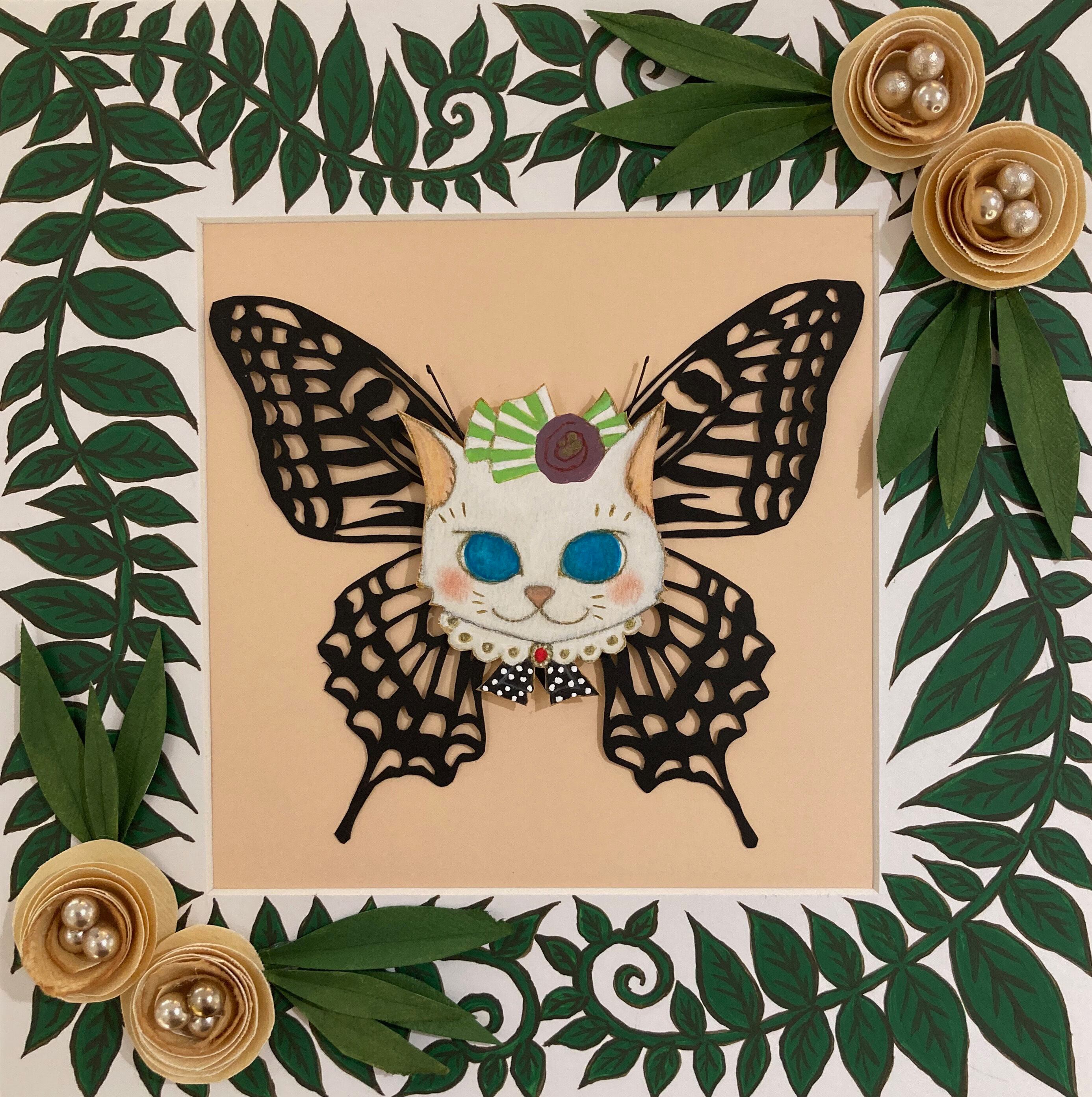 可愛い白ニャンコ。蝶々に憧れて羽をつけて