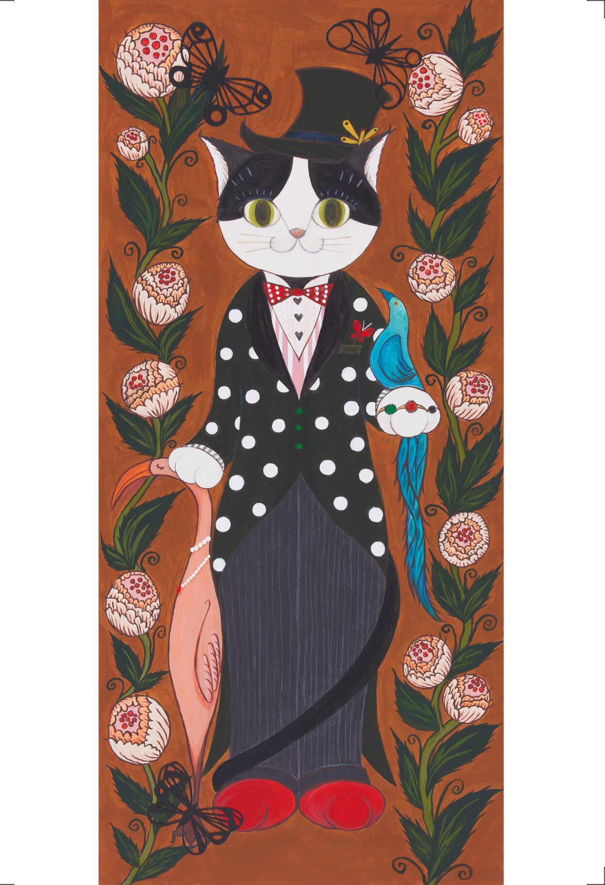ポスタカードサイズ 148×100mm オリジナルアクリル原画『タキシード猫』のポストカード かっこよくキメたハチワレくん