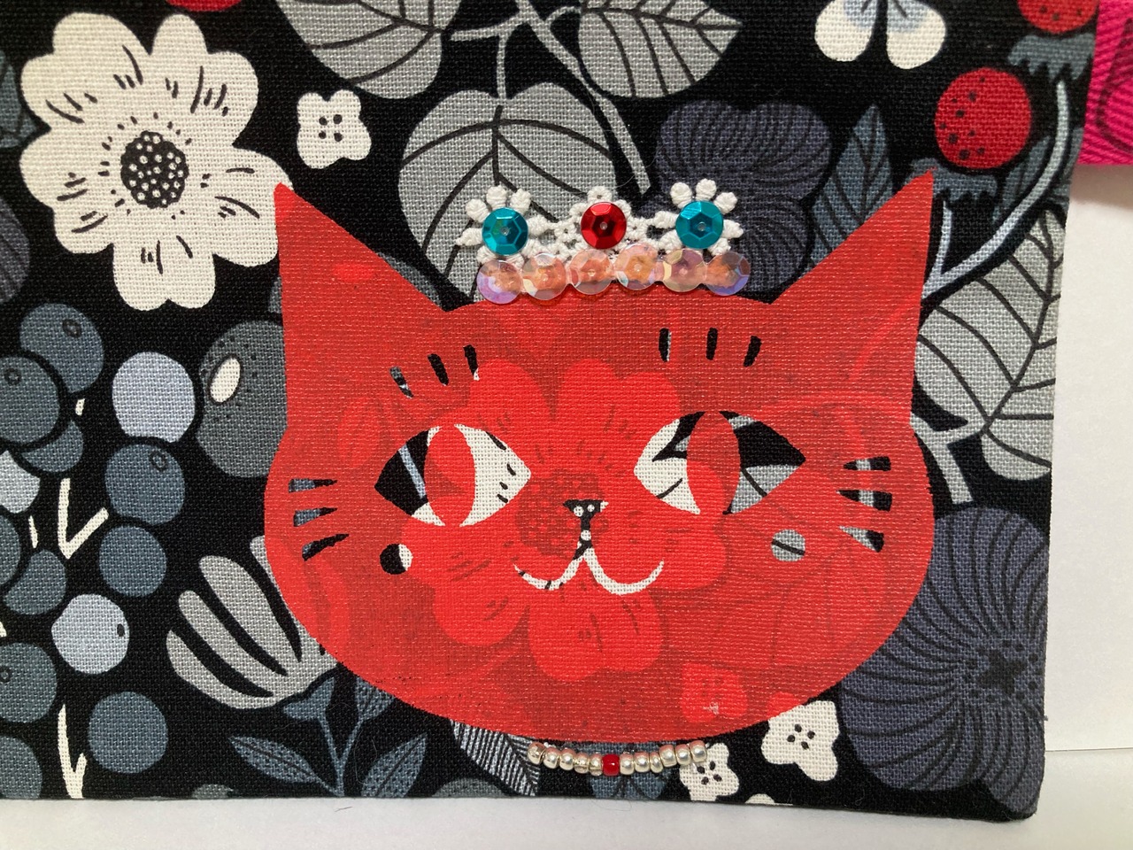 ポーチサイズ 16cm×19cm 猫スタンプ部分シルクスクリーンにて印刷