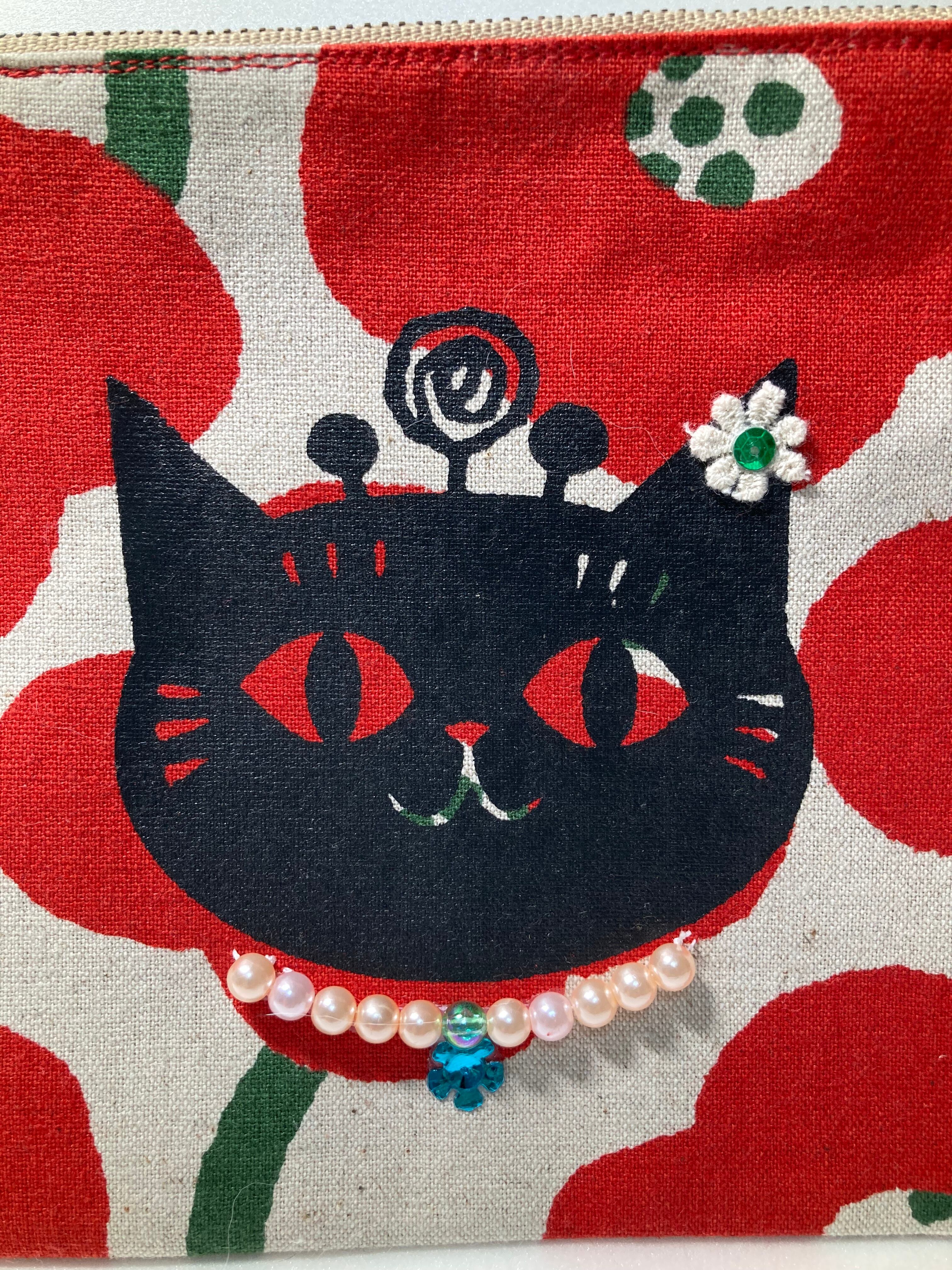 ポーチサイズ 15cm×19cm 猫スタンプ部分シルクスクリーンにて印刷